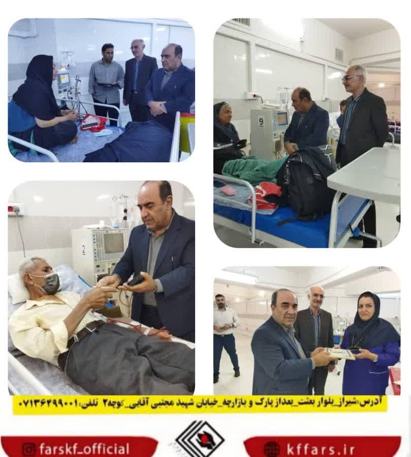 به مناسبت هفته حمایت از بیماران کلیوی ،عبدالحمید کشاورز مدیر انجمن، ضمن حضور در بخش دیالیز شاهچراغ، از بیماران عیادت و از کادر پرستاری نیز تقدیر بعمل آورد .
